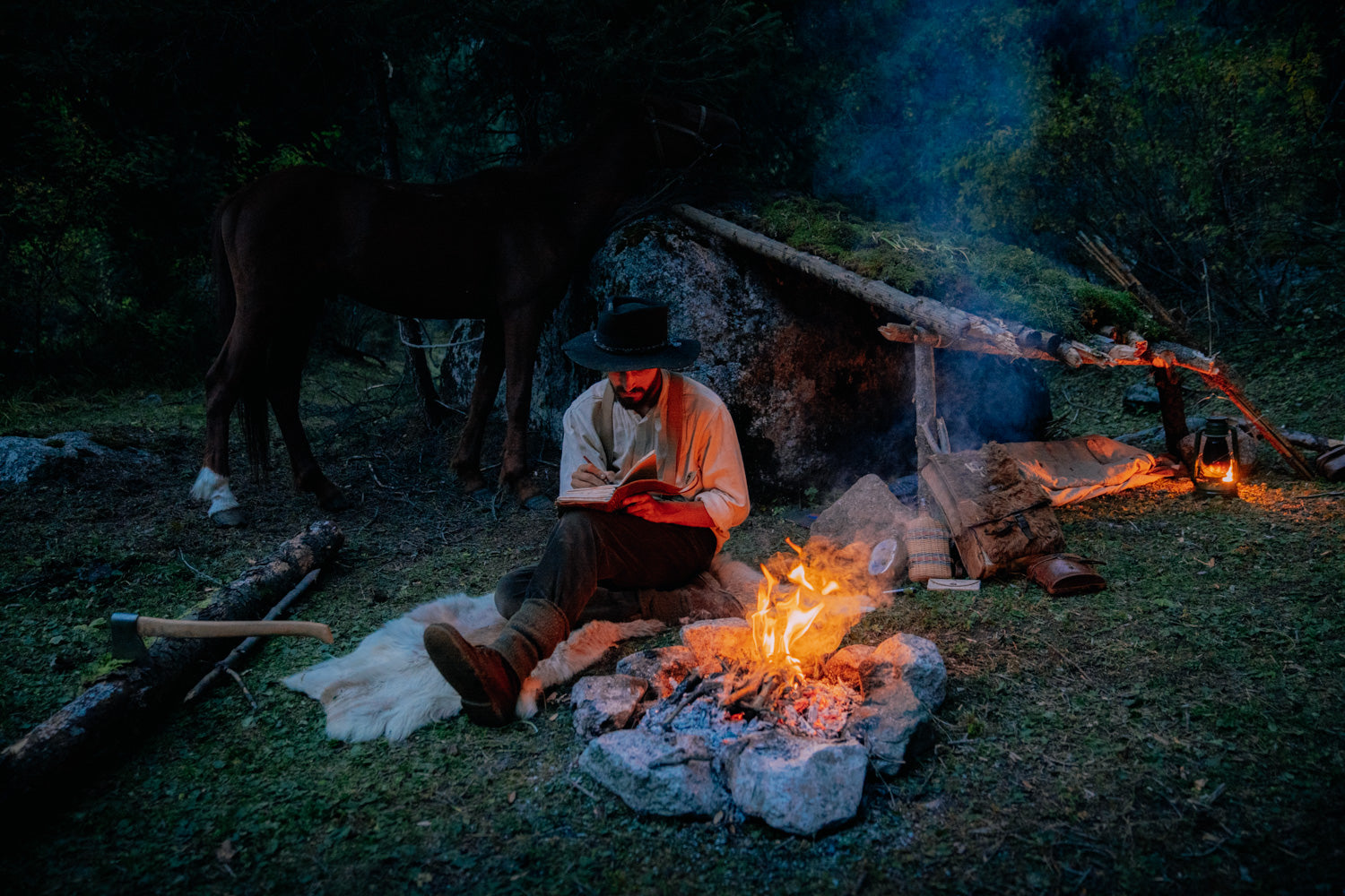 Un authentique bagna (sauna) en intérieur bois traditionnel Kirghize au milieu des montagnes et entouré de chevaux. Féérique !